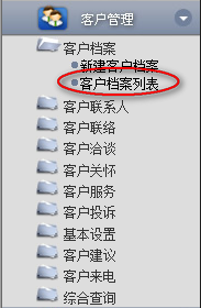 1.點擊辦公模式→客戶管理→客戶檔案→客戶檔案列表,進入“客戶檔案列表”窗口: