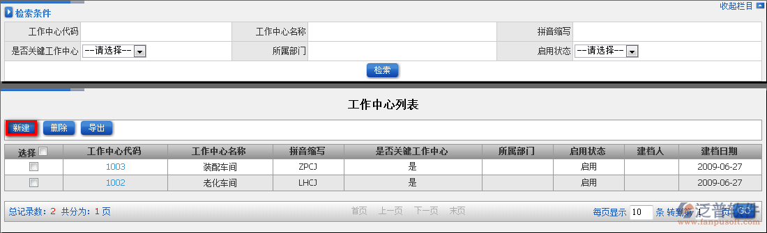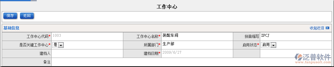 如何在泛普軟件ERP系統(tǒng)生產管理中新建工作中心?