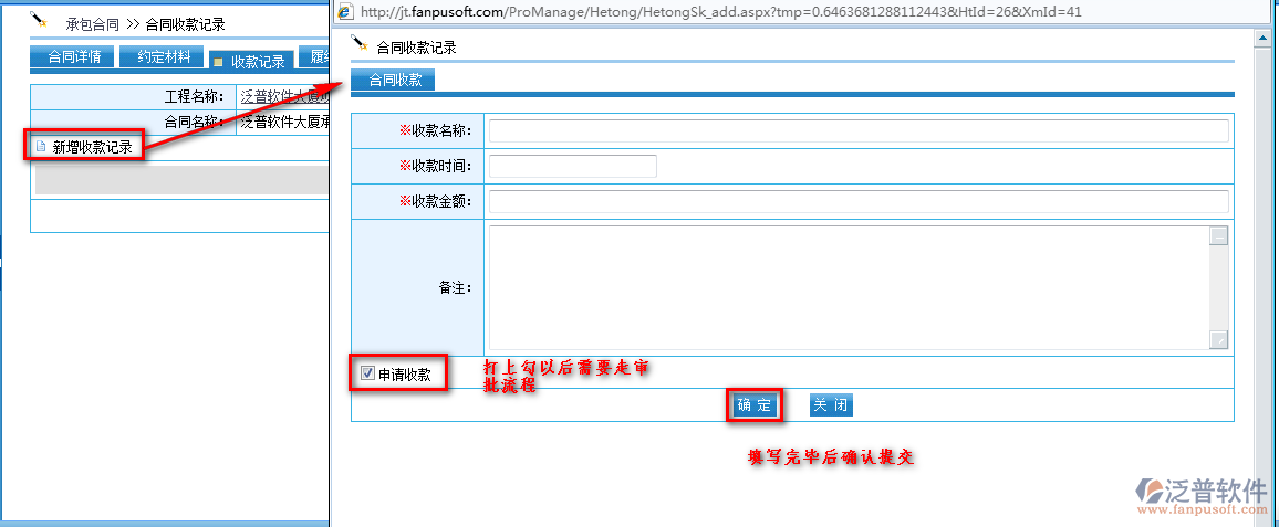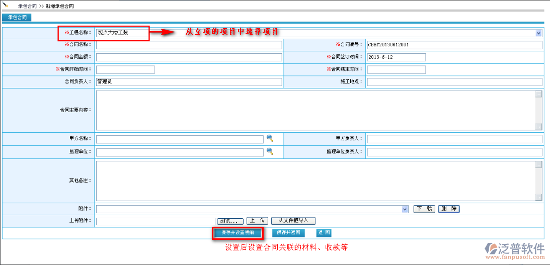 如何在泛普軟件-工程項(xiàng)目管理系統(tǒng)中新建承包合同,首先進(jìn)入到【項(xiàng)目管理】—【工程管理】—【承包合同】,如圖: