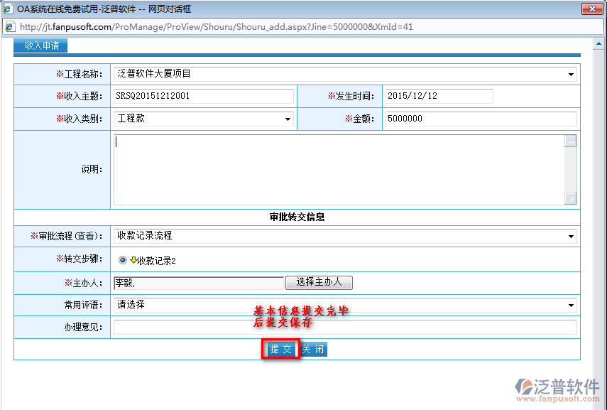 注意:履約保證金和合同代扣是走付款流程審批,收入申請(qǐng)走的是收款流程(收入)