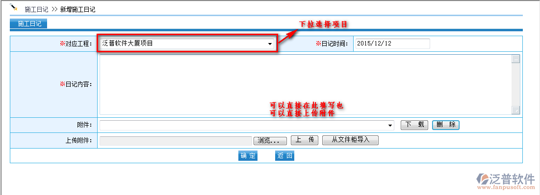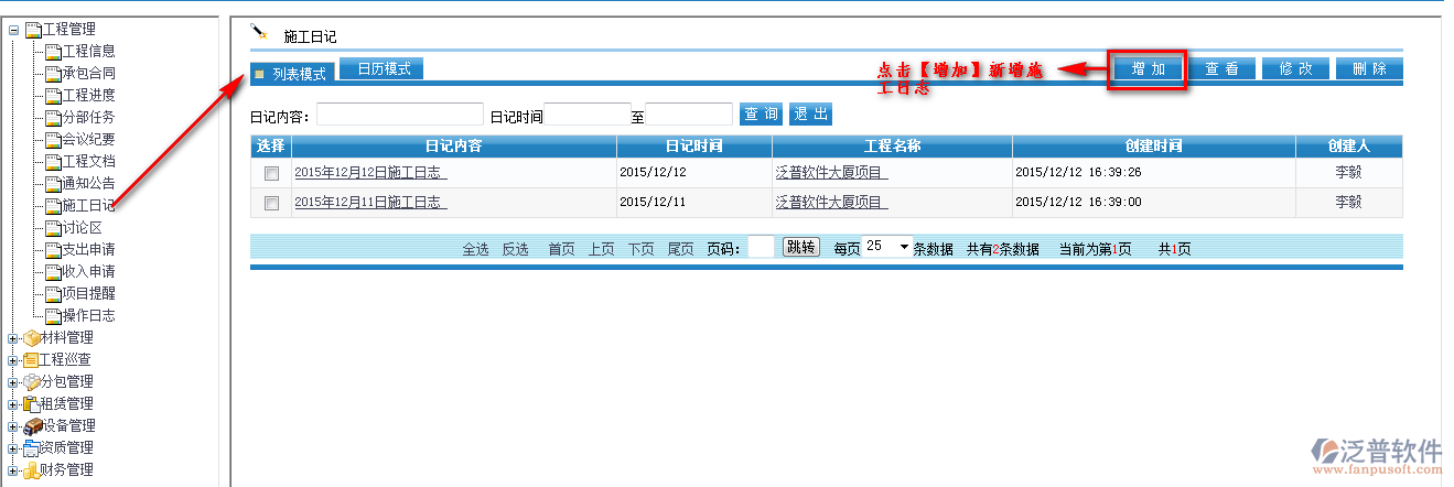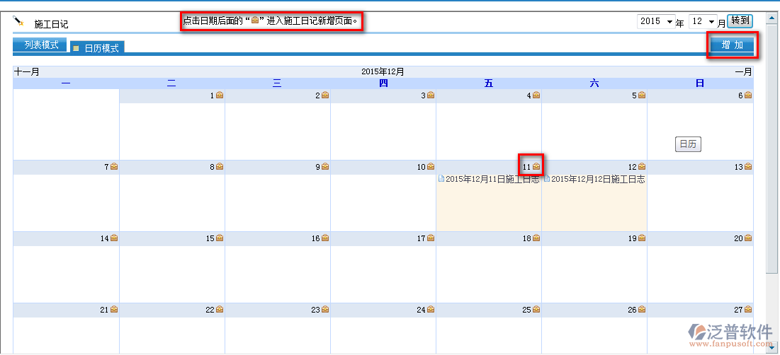 如何在泛普軟件中填報(bào)施工日志,首先進(jìn)入【項(xiàng)目管理】—【工程管理】—【施工日志】
