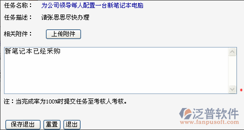 點(diǎn)擊任務(wù)匯報(bào)按鈕進(jìn)行任務(wù)匯報(bào)。對(duì)于自己參與的任務(wù),只能填寫任務(wù)匯報(bào)內(nèi)容。對(duì)于自己負(fù)責(zé)的任務(wù),除了填寫任務(wù)匯報(bào)內(nèi)容外,還可以設(shè)置狀態(tài)和完成率。