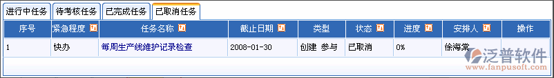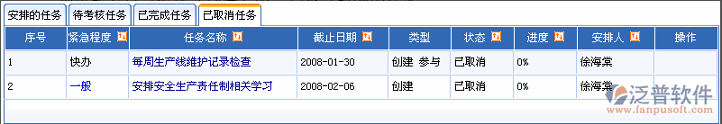 5、已取消任務(wù)列出所有自己安排(創(chuàng)建)的、后來又取消的任務(wù)。