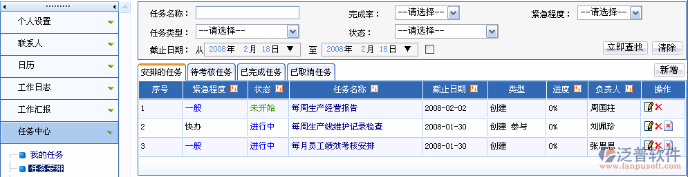 l 有任務(wù)安排權(quán)限的用戶可以看見“新增”按鈕;