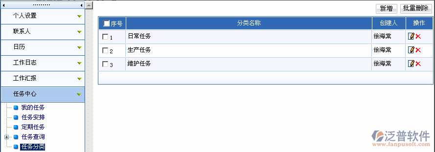 有權(quán)限的用戶可以新增任務(wù)分類。