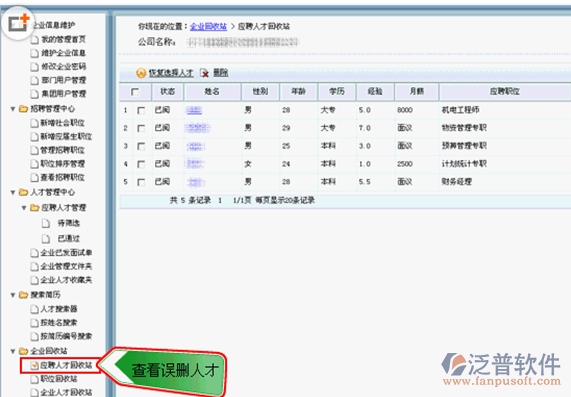 泛普軟件的招聘管理系統(tǒng)的模塊: