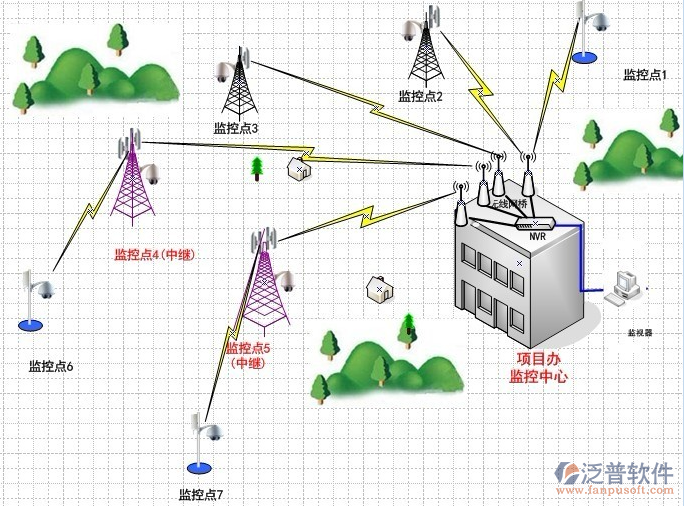 建筑工地監(jiān)控布線不便,全部進(jìn)行基礎(chǔ)網(wǎng)絡(luò)架設(shè)比較困難,故采用無(wú)線網(wǎng)絡(luò)進(jìn)行全方位的監(jiān)控應(yīng)為首選。