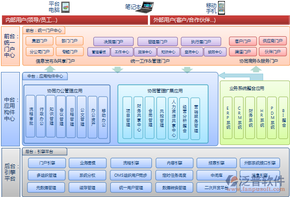 基于此種現(xiàn)狀泛普OA軟件提出了泛普OA協(xié)同管理應(yīng)用平臺(tái)OA在保險(xiǎn)行業(yè)的應(yīng)用解決方案。該方案針對(duì)保險(xiǎn)行業(yè)的業(yè)務(wù)模式和管理模式將其所涉及的業(yè)務(wù)管理、信息管理、客戶資源管理、財(cái)務(wù)管理等集成到一個(gè)統(tǒng)一的平臺(tái)上運(yùn)做,融入?yún)f(xié)同距陣模型和齒輪聯(lián)動(dòng)模型的設(shè)計(jì)理念,以CRM模塊為中心,其他模塊為輔助,同時(shí)結(jié)合企業(yè)信息門(mén)戶和集團(tuán)數(shù)據(jù)中心解決了保險(xiǎn)行業(yè)最關(guān)鍵的兩個(gè)問(wèn)題-客戶資源管理和數(shù)據(jù)集中。