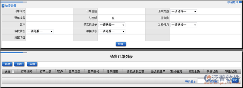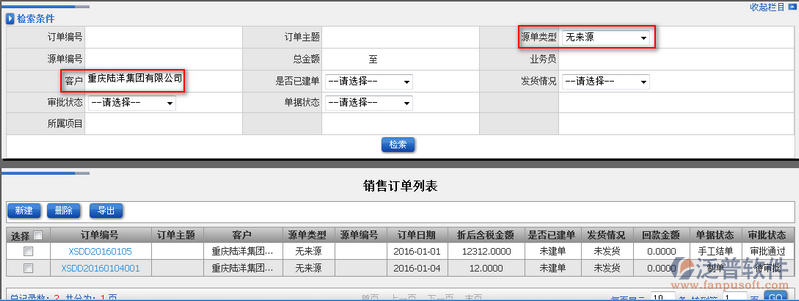 2、通過(guò)上圖中的檢索條件便可對(duì)所有的銷(xiāo)售訂單進(jìn)行模糊查詢(xún)。查詢(xún)條件可以為多條件或單個(gè)條件進(jìn)行查詢(xún)。如圖:
