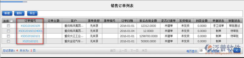 3、查詢(xún)到的銷(xiāo)售訂單可以詳細(xì)看到發(fā)貨情況、回款金額等相關(guān)信息。同時(shí)點(diǎn)擊【訂單編號(hào)】便可查看銷(xiāo)售訂單的詳細(xì)信息。如圖: