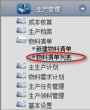 1.點擊辦公模式→生產(chǎn)管理→物料清單→物料清單列表,進入“物料清單列表”窗口: