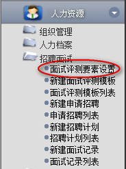 1.點擊辦公模式→行政管理→招聘面試→面試評測要素設(shè)置,進(jìn)入“面試評測要素設(shè)置”窗口: