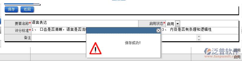 3.啟動狀態(tài)需要啟動才能使用,點擊【保存】新建完畢,關(guān)閉保存提示點擊【返回】