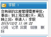 收到工作時(shí),待辦工作會(huì)顯示在桌面上的【待辦事宜】中顯示,通過(guò)內(nèi)部短消息提醒的即可彈出提醒窗口