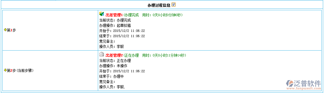 出差辦理在辦理過(guò)程中,可以查看上一級(jí)或者前面所有的審批意見(jiàn),點(diǎn)擊“辦理過(guò)程信息”就可以清楚查看每個(gè)步驟審批的具體情況