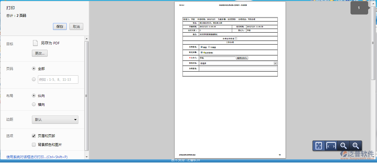 OA辦公系統(tǒng)中出差報(bào)銷單可以直接在系統(tǒng)中進(jìn)行打印,方便員工直接拿到財(cái)務(wù)處進(jìn)行報(bào)賬處理。打印頁(yè)面可以調(diào)整整個(gè)打印表單大小,可根據(jù)紙張大小調(diào)整。