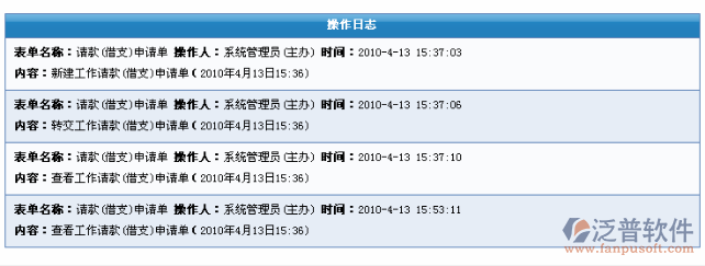 點擊【流轉(zhuǎn)日志】進入到操作日志頁面: