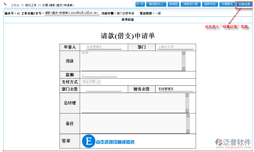 點擊【印章記錄】進入到印章記錄查看頁面: