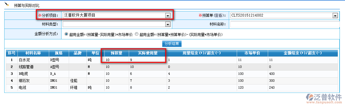 材料預(yù)算與實(shí)際對比,預(yù)算部下達(dá)給項(xiàng)目部目標(biāo)成本控制情況