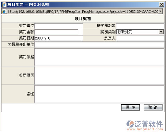 輸入項目獎罰相關信息,信息輸入無誤后點擊“保存”功能按鈕,獎罰信息添加成功;