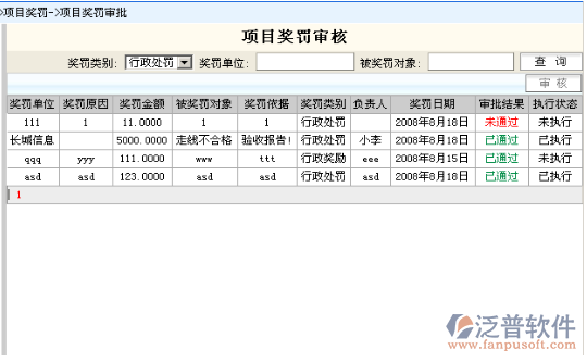 項目獎罰審批是對項目獎罰信息進行審批維護管理;