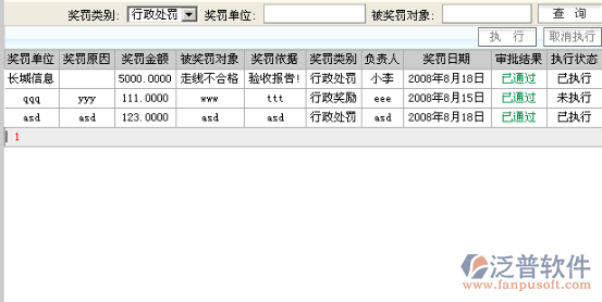 項目獎罰查詢根據(jù)獎罰信息的獎罰類別、獎罰單位、被獎罰對象等獎罰信息進行查詢;