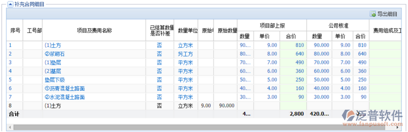 2、補(bǔ)充合同細(xì)目中藍(lán)色字體為主合同的細(xì)目,只能查看不能修改,新添加的補(bǔ)充合同細(xì)目展示為黑色。