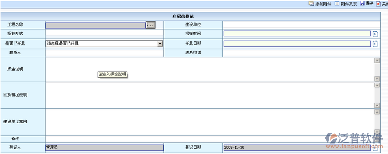 填寫介紹信登記信息。點擊右上角可填寫附件。表單如下: