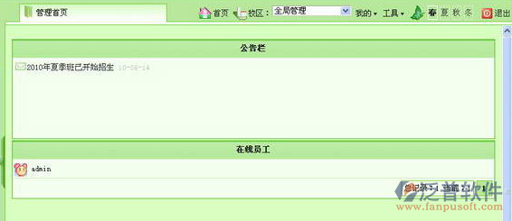 泛普軟件泛普OA系統(tǒng)培訓(xùn)機(jī)構(gòu)管理系統(tǒng)設(shè)計亮點在于以戶資源管理為核心,功能延伸至培訓(xùn)機(jī)構(gòu)管理的各個業(yè)務(wù)環(huán)節(jié)。充分體現(xiàn)把握了客戶資源[學(xué)員],就把握了市場的普遍原則,使企業(yè)的業(yè)務(wù)人員能夠?qū)崿F(xiàn)快速的、有效的挖掘客戶,管理人員能夠及時根據(jù)市場需求調(diào)整自己的經(jīng)營策略,從而為培訓(xùn)企業(yè)(機(jī)構(gòu))帶來持續(xù)的利潤增長點。