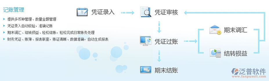 只需填制日常記賬憑證,記賬王自動完成登記賬簿、結(jié)轉(zhuǎn)損益、期末調(diào)匯等賬務(wù)處理工作,省時(shí)省力; 標(biāo)準(zhǔn)記賬,輕松工作