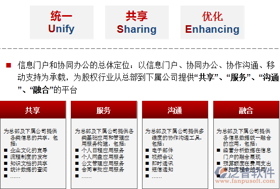 不管是企業(yè)OA的還是ERP或者其他業(yè)務(wù)系統(tǒng),圍繞著企業(yè)整體的管理運(yùn)營體系,通過協(xié)同OA信息門戶加以聚合展現(xiàn),幫助企業(yè)打造員工辦公平臺(tái),這個(gè)平臺(tái)的作用,是最終要提升員工工作效率,把它作為提升組織運(yùn)營效率的一個(gè)窗口和門戶。而另一方面,協(xié)同OA為企業(yè)決策和管理層提供“工作、管理、決策、溝通和資訊”一體化管理平臺(tái);為各級(jí)管理層提供優(yōu)秀的管理結(jié)構(gòu)和管理工具,提升管理的效率;為各級(jí)管理層打造高績效工作體系和團(tuán)隊(duì)培養(yǎng)體系。