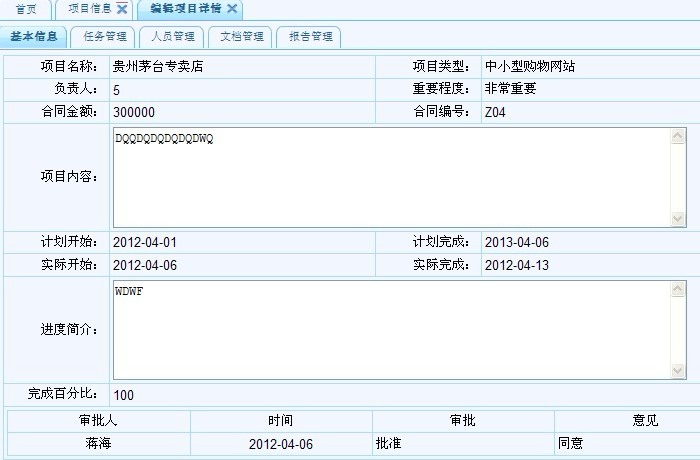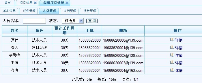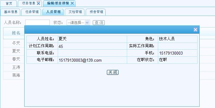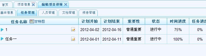 項目信息,包括項目基本信息,以及任務(wù)管理、項目人員管理、文檔管理、報告管理等進行查看。
