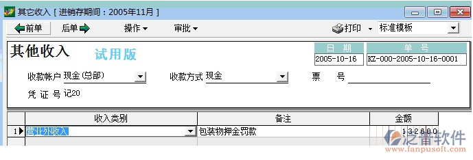 處理除主營業(yè)務(wù)收入以外的其他收入,如租賃所得、服務(wù)費用收入等。單據(jù)的必填字段包括:經(jīng)辦人、收款來源、收入類別、金額;主表的金額由明細表中各明細的金額合計得出,不可編輯;