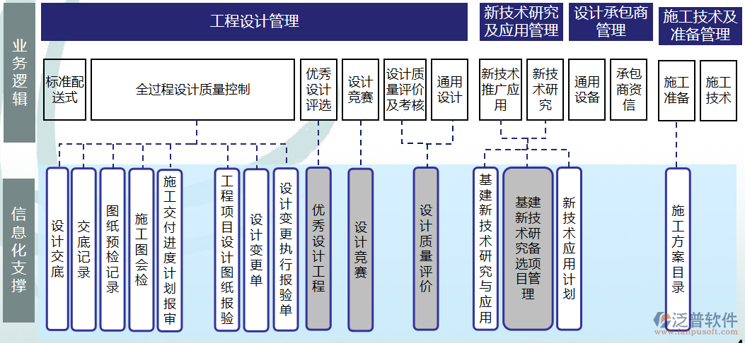 目前,泛普基建管理信息系統中對于技術管理專業(yè)的支撐主要集中在設計評價、評優(yōu)和統計報表方面。